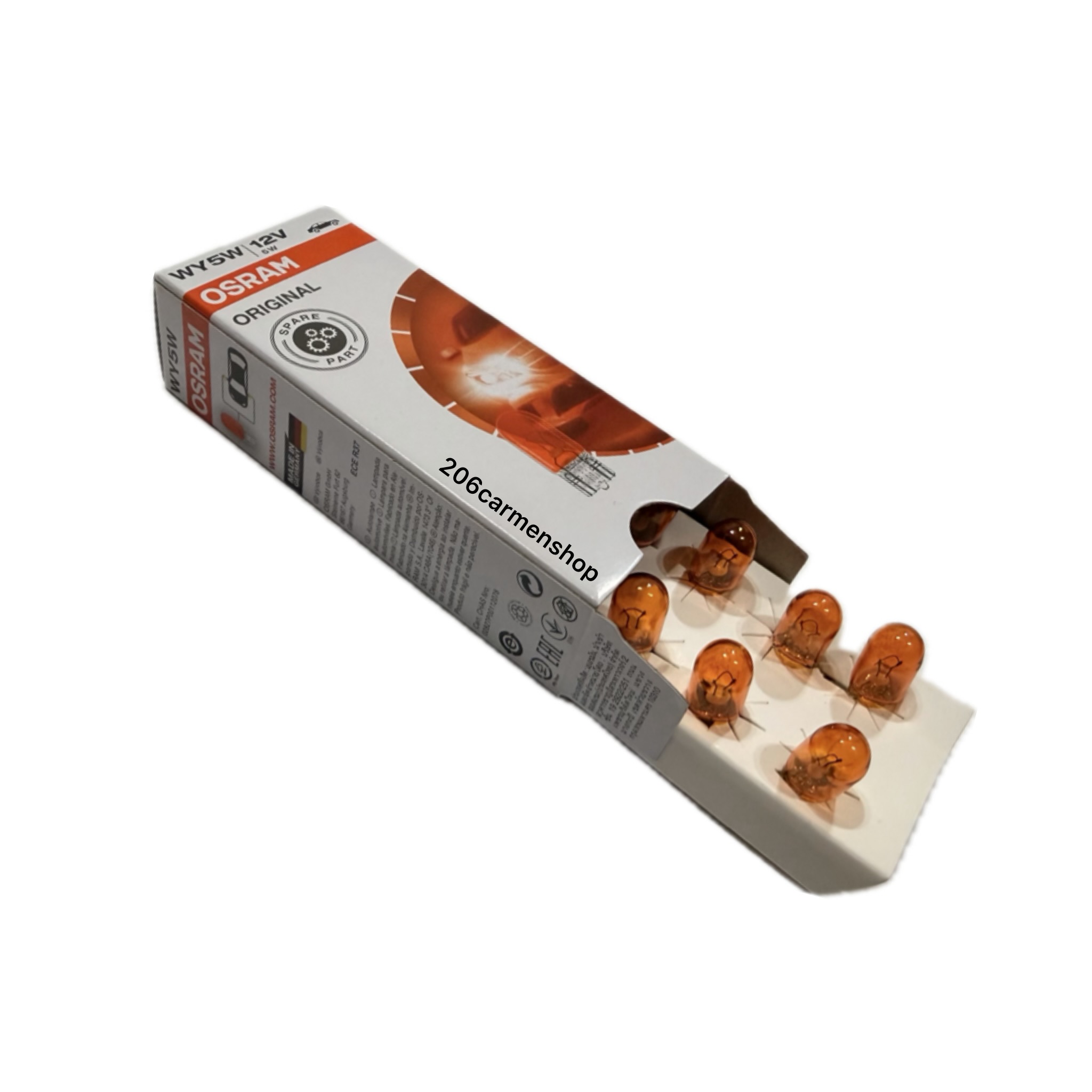لامپ نارنجی OSRAM اورجینال®/ آکبند/ ساخت آلمان قابل نصب بر روی چراغ کوچک و راهنما گلگیر.
